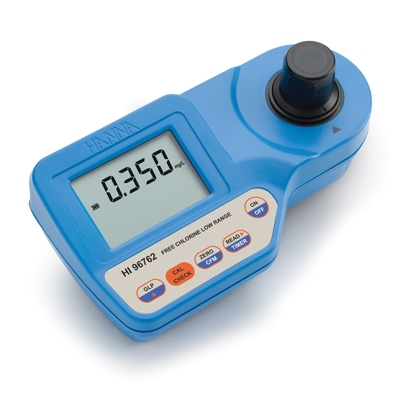 HI96762 es un medidor que mide el contenido de cloro libre (Cl2) en la muestra de agua en 0.00 hasta el rango 0.500 mg/L (ppm). HI 96762 fue desarrollado especialmente para medir bajas concentraciones de cloro libre en el agua potable.