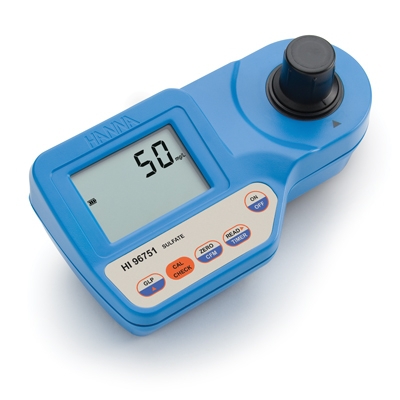 El HI96751 mide el contenido de sulfato en muestras de agua en rango 0 a 150 mg / l (ppm). El sulfato se precipita con cristales de cloruro de bario.