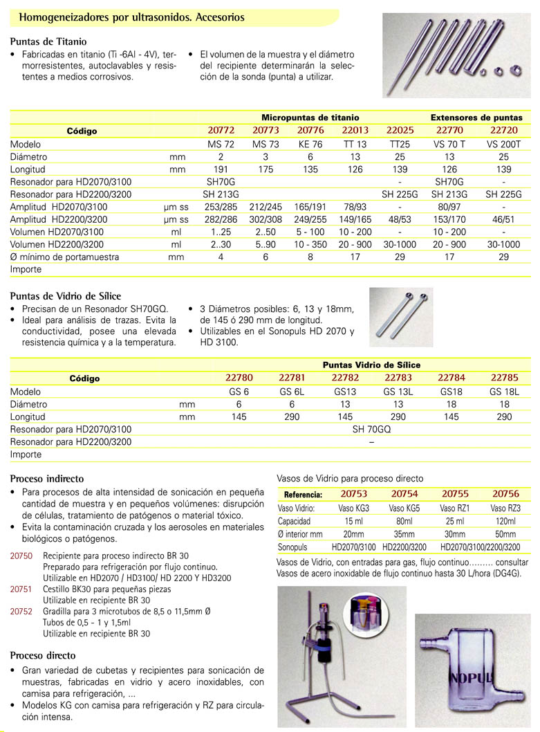Accesorios generales para Sonicadores Sonopuls Bandelin: