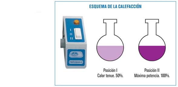 • Provista de interruptor-selector de 2 potencias de calefacción con indicador luminoso aislado del contenedor de la manta calefactora.
