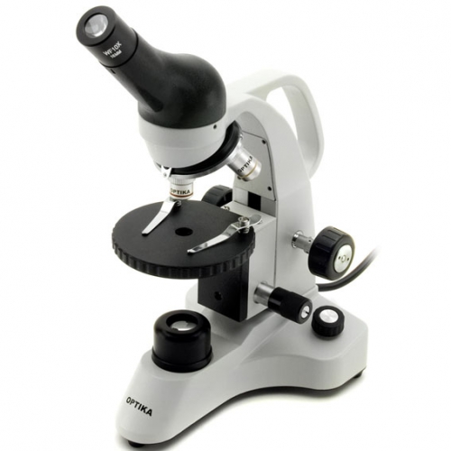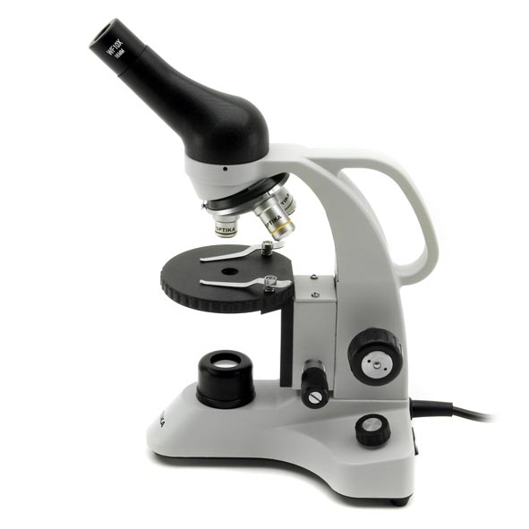 Microscopio biológico monocular especialmente diseñado para alumnos de Primaria y Secundaria.