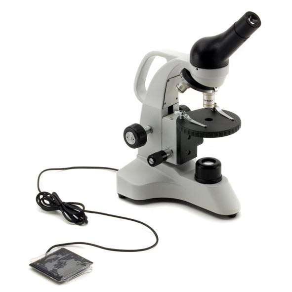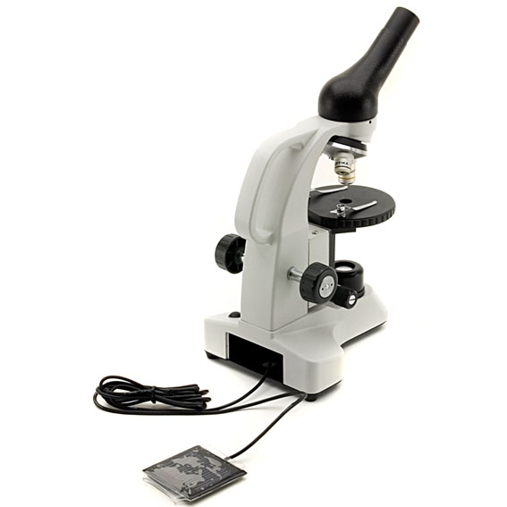Microscopio biológico monocular especialmente diseñado para alumnos de Primaria y Secundaria.