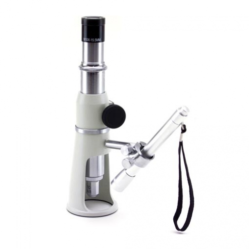 Microscopio monocular portátil para medición de superfícies, 100x aumentos, iluminador incidente tipo lápiz.