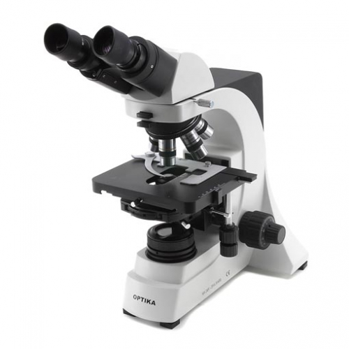 Microscopio de laboratorios para aplicaciones de rutina e investigación. Estativo de metal, con gran estabilidad y ergonomía. Observación con luz transmitida.