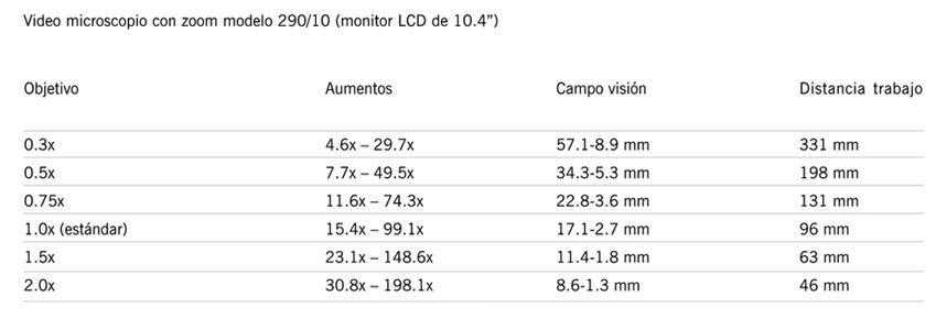 Videomicroscopio LCD con zoom, pantalla 10,4" 1024x768, modelo 290/10