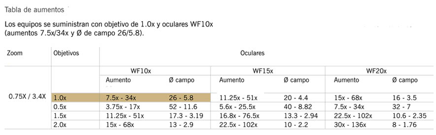 Rango de zoom variable dependiendo del modelo y ajustable mediante mandos a ambos lados del cabezal.