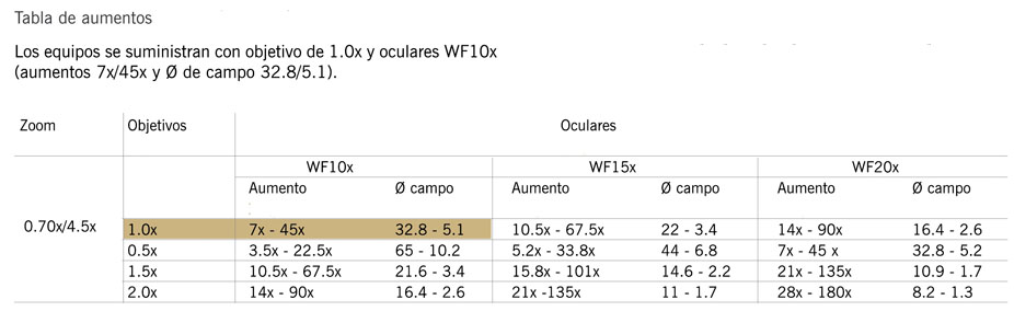 • Rango de zoom variable dependiendo del modelo y ajustable mediante mandos a ambos lados del cabezal.