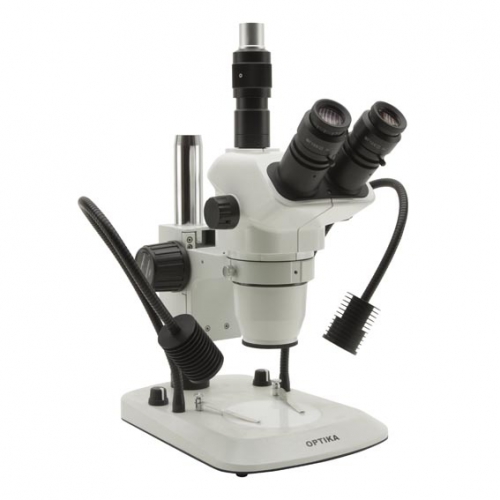Estereomicroscopio Triocular Zoom 6,7x…45x con base e iluminación LED