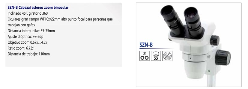 Cabezal Binocular, oculares alto punto focal WF10x/22mm, objetivo Zoom