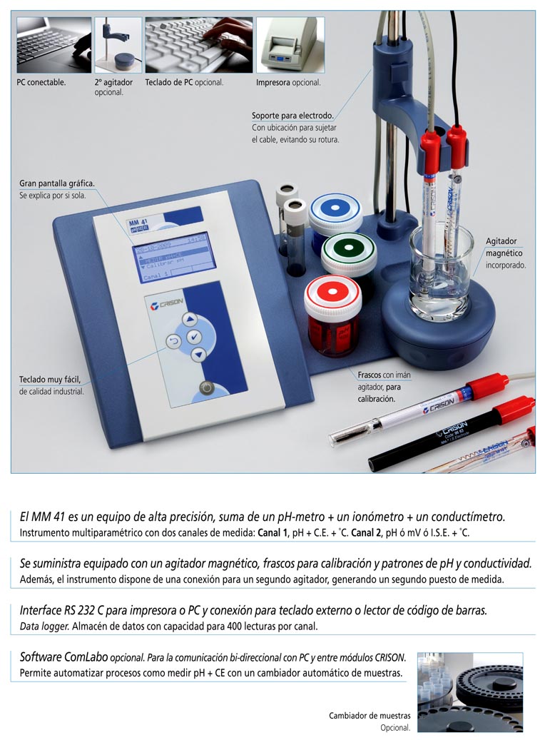 • El software ComLabo permite el control desde el PC de varios módulos CRISON, pH-metros, conductímetros, buretas automáticas, Sampler, etc.