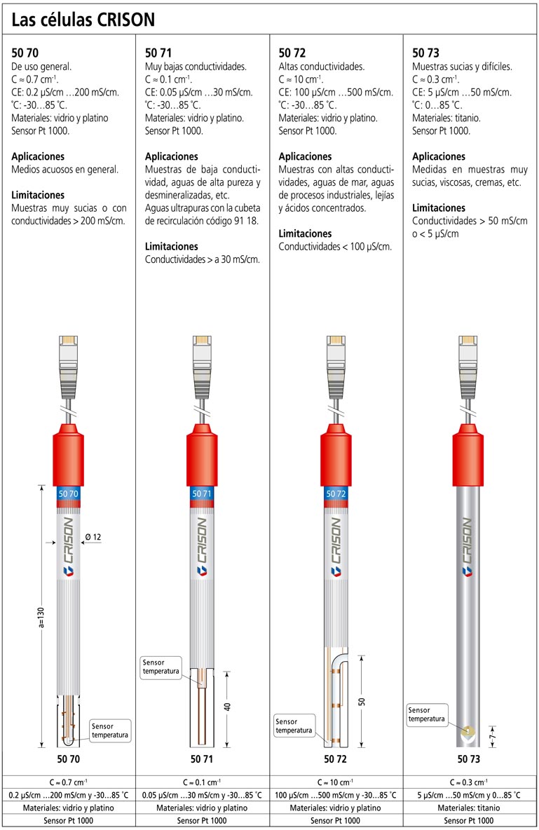 • Los patrones de conductividad CRISON se preparan según la norma ASTM D1125-95 y se contrastan frente a patrones NIST.