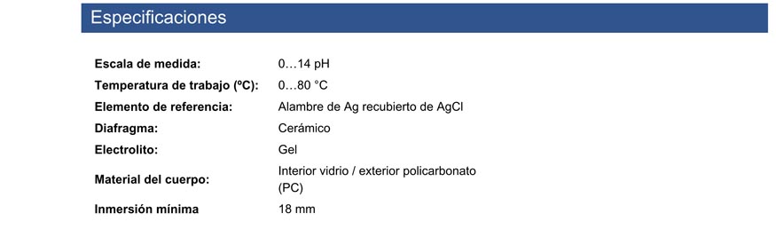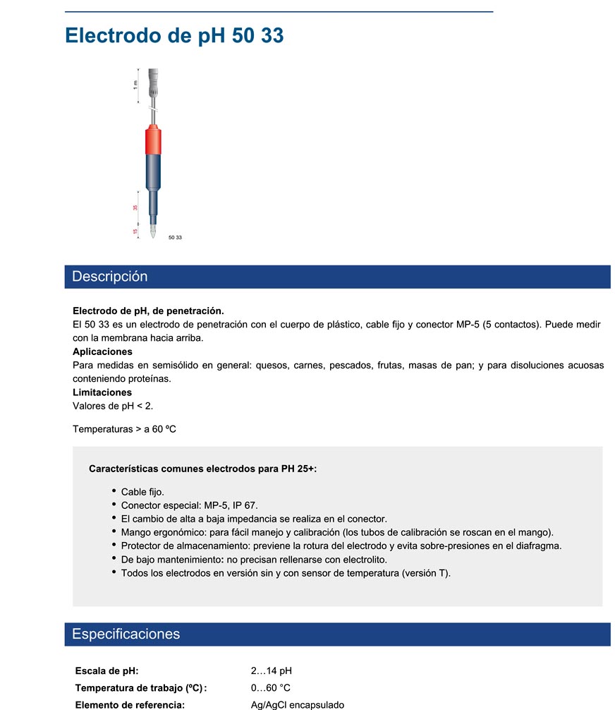• Electrodo de penetración 50 33, Versión económica, con vaina de POM, sin mango. pH 2 … 14, Temp. 0 … 60 ˚C. . (Sin C.A.T.)