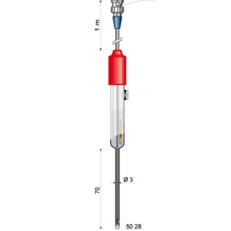 Electrodo para micromuestras Ø3mm, cuerpo vidrio, pH 0-14, 0-80ºC