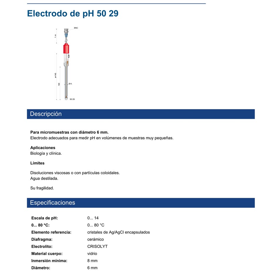 Electrodo adecuado para medir pH en volúmenes de muestras muy pequeñas.