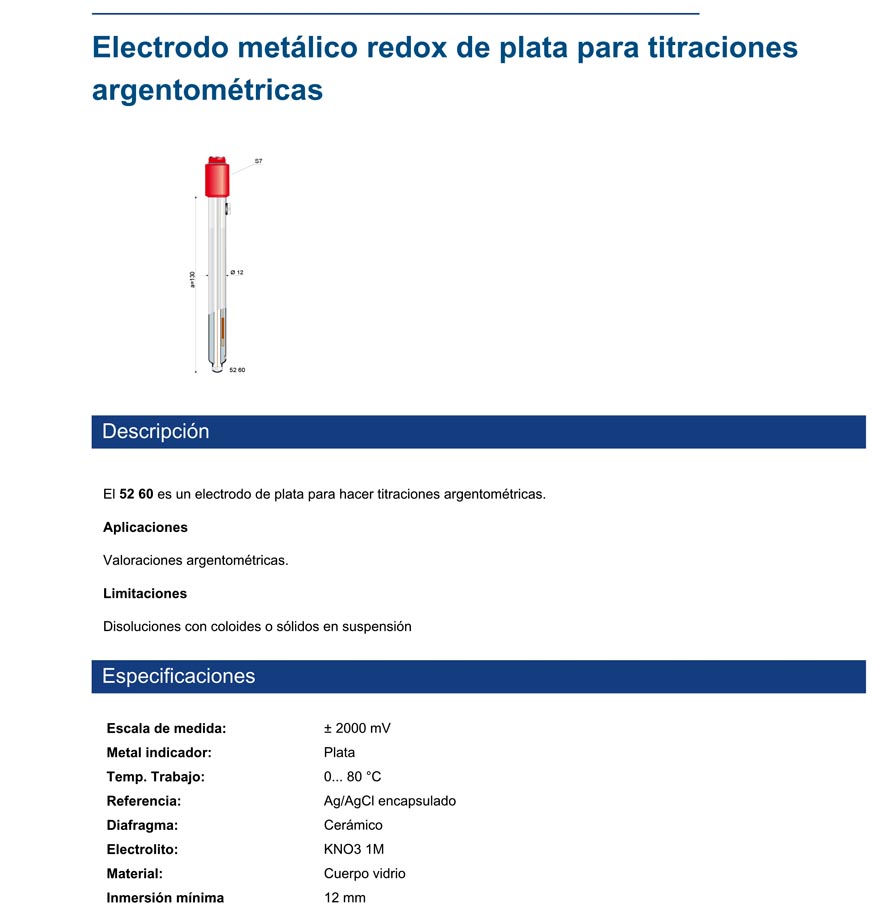 El 52 60 es un electrodo de plata para hacer titraciones argentométricas.