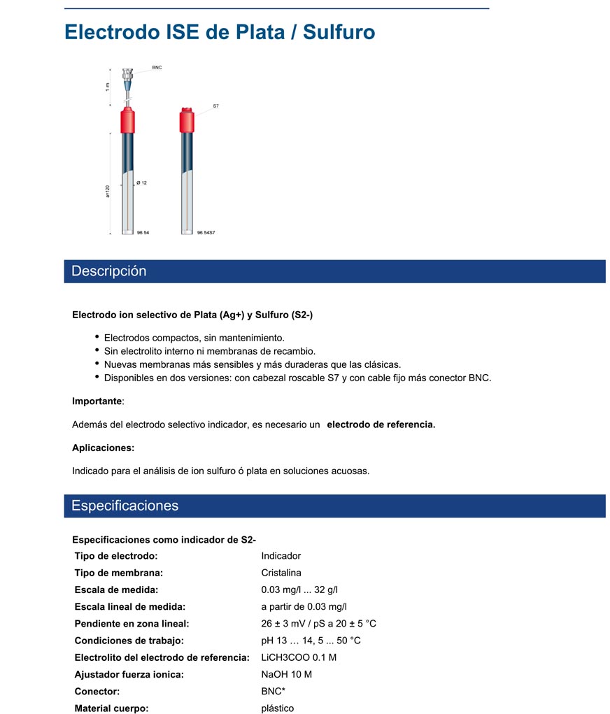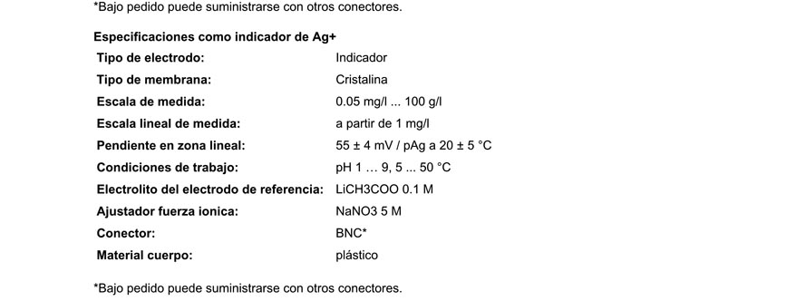 Electrodo indicador ISE, de plata/sulfuro (Ag+/S2-), con cable 1 metro y conector BNC
