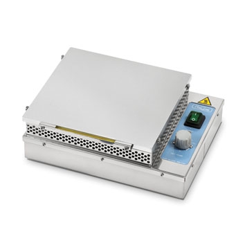 Temperatura sobre placa hasta 130° C, con selector de potencia de calefacción.