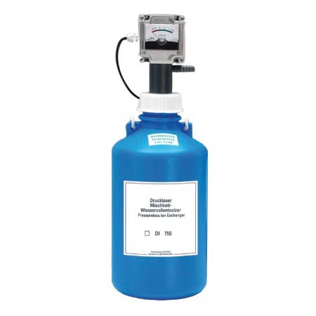 • El conductivímetro, incluido, controla en continuo la calidad del agua producida, indicando cuando debe cambiarse de resinas.
