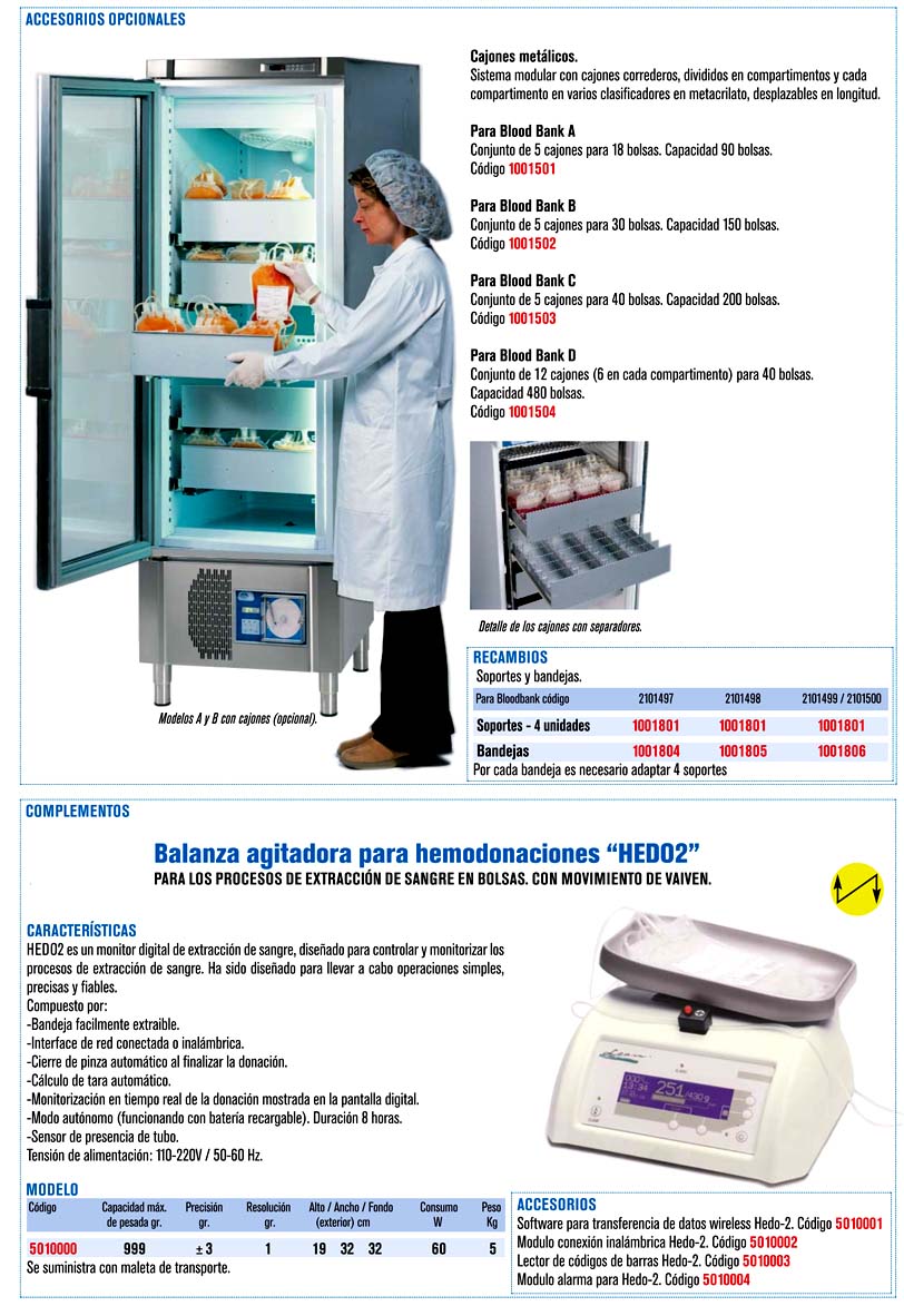 - Armario especialmente concebido para almacén y conservación de bolsas de sangre.