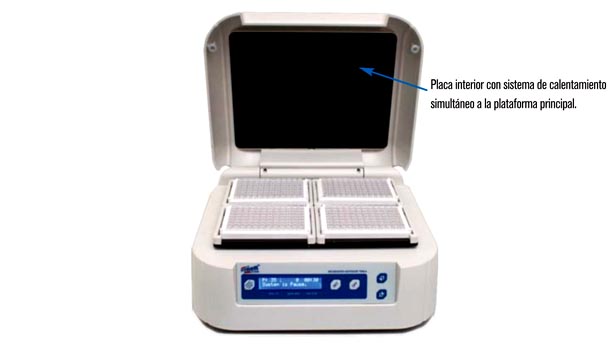 - Mueble exterior en ABS con plataforma para calentar y agitar de hasta 4 placas Microtiter de 96 pocillos cada una.