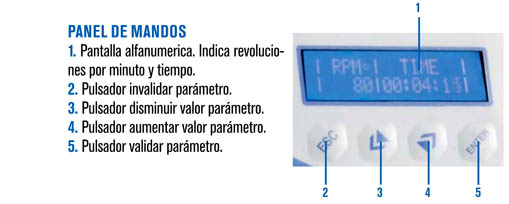 • Regulación de velocidad: 15 - 200 r.p.m.