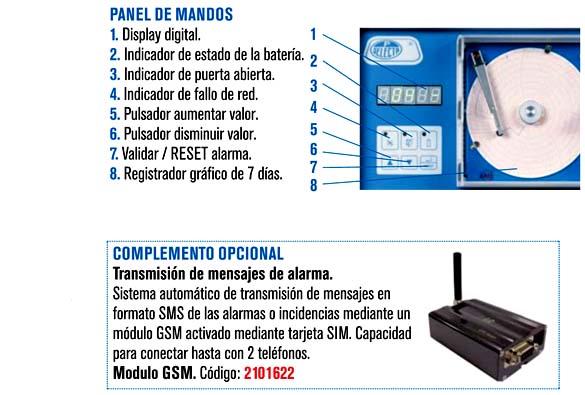 • Registrador gráfico de la temperatura. 7 días con autonomía de 6 meses.