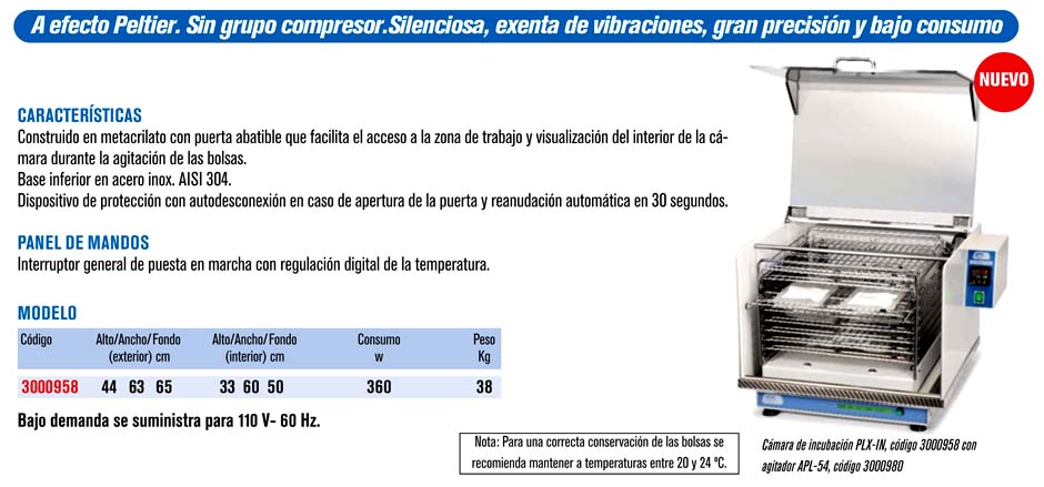 Para agitador de bolsas de plaquetas APL-54, capacidad 54 bolsas de plaquetas.