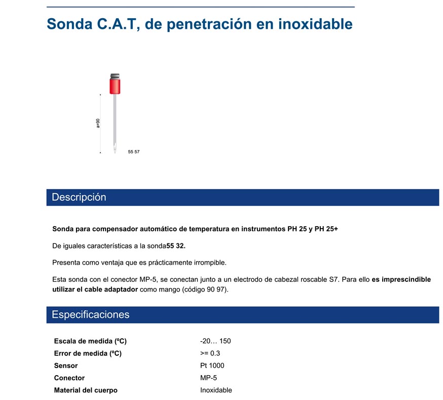 Sonda de acero inox. para compensador automático de temperatura en instrumentos PH 25 y PH 25+.