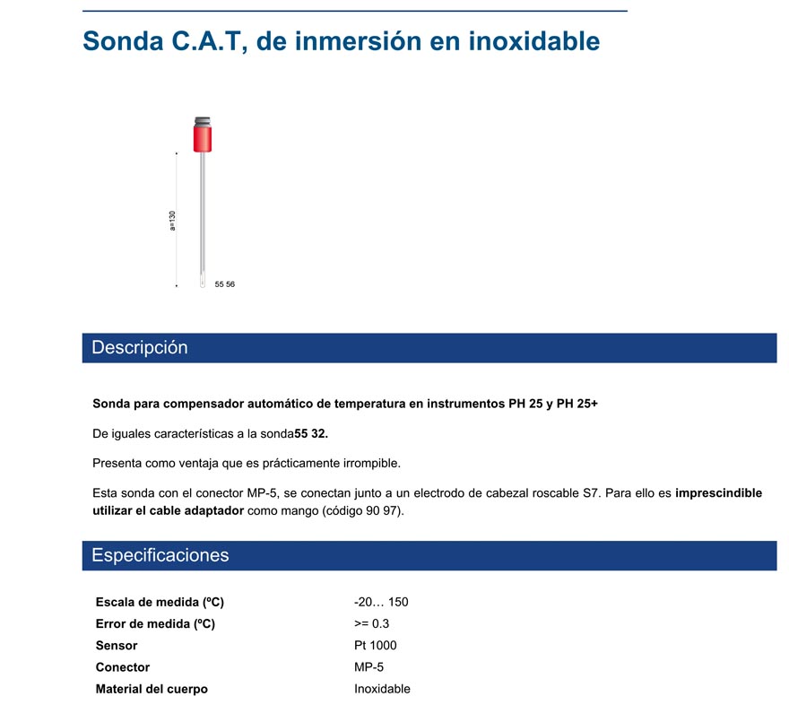 Sonda de acero inox. para compensador automático de temperatura en instrumentos PH 25 y PH 25+.