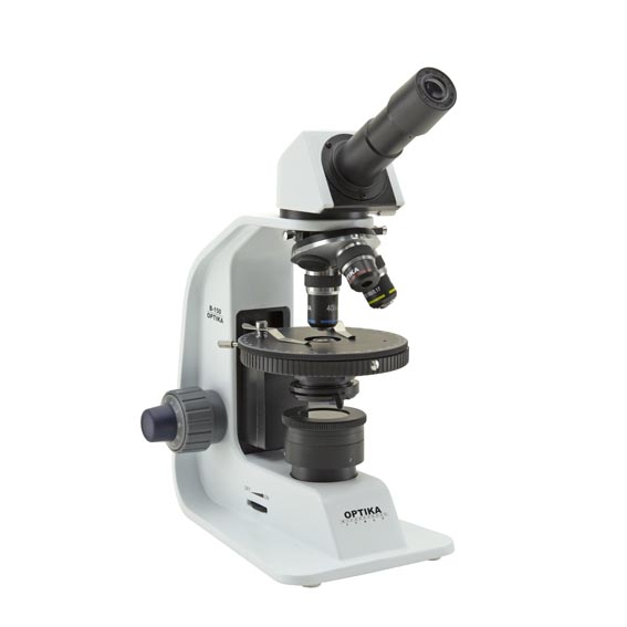 • Modelo: B-150POL-MR: monocular con platina giratoria; objetivos 4x, 10x, 40x, baterías recargables.