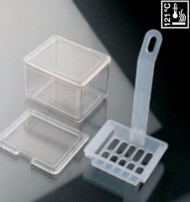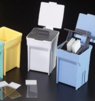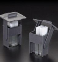 Sistema de tinción compuesto por una cubeta y una gradilla de tinción para doce portaobjetos. Los...