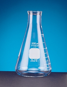 Matraz Erlenmeyer reforzado, boca normal 4.000ml. Original Pyrex Capacidad: 4.000ml. Boca para tapón ASTM serie: 10 Ø Exterior máximo: 206mm. Altura: 360mm. Referencia: 4980/4L Marca: Original Pyrex « Volver