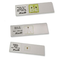Presentado en portaobjetos de 26x76mm., con los bordes esmerilados para evitar cortes y debidamente etiquetadas para su correcta y rápida identificación.